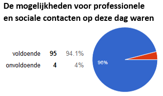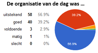Dat gold zowel voor de organisatie van de dag – die door 96% van de respondenten goed of zelfs uitstekend werd genoemd – als voor de prijs/kwaliteit-verhouding.