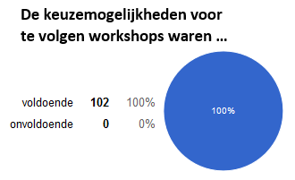 Voor de workshops was er helaas wel een onvoldoende, een 5, maar de negen overige workshops scoorden tussen 6,9 en 8,4. En dat maakte dat, ondanks die ene onvoldoende, het gemiddelde toch nog 0,05 punt hoger lag dan vorig jaar ….