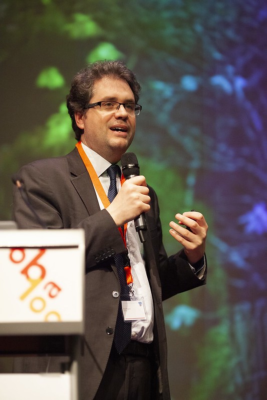 De tweede keynote werd verzorgd door Ruben Verborgh uit Gent. Zijn hoofdthema was het toen zeer gehypte “Blockchain”, maar zijn lezing ging vooral in de richting van methoden om internetgebruikers zelf hun persoonlijk gegenereerde gegevens te laten beheren, in plaats van die gegevens aan big tech cadeau te doen.
