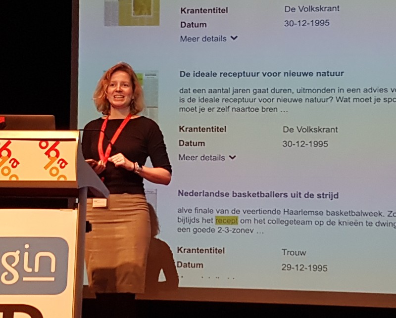 Andere lezingen werden gegeven door Arnout Engelfriet (over wat de AVG privacy wetgeving voor zoeksystemen betekent), door Daan Odijk (over algoritmes die bij mediaorganisaties worden gebruikt), door Paula Kassenaar (over de bij Zalando ontwikkelde Knowledge Graph), door Marieke van Erp (over het aan oude krantenberichten ontlenen van recepten – voor gerechten), door Cynthia Liem (hoe “verborgen schatten” – de veelheid aan intussen gedigitaliseerd materiaal –