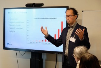 NeesJan van Eck gaf een introductie op gebruik van VOSviewer, een open source visualisatie-tool voor wetenschappelijke netwerken. Erik Elgersma – in 2015 al present met een lezing – baseerde nu een workshop op zijn eigen ervaringen met het opzetten van een zelfstandige informatiedienst.