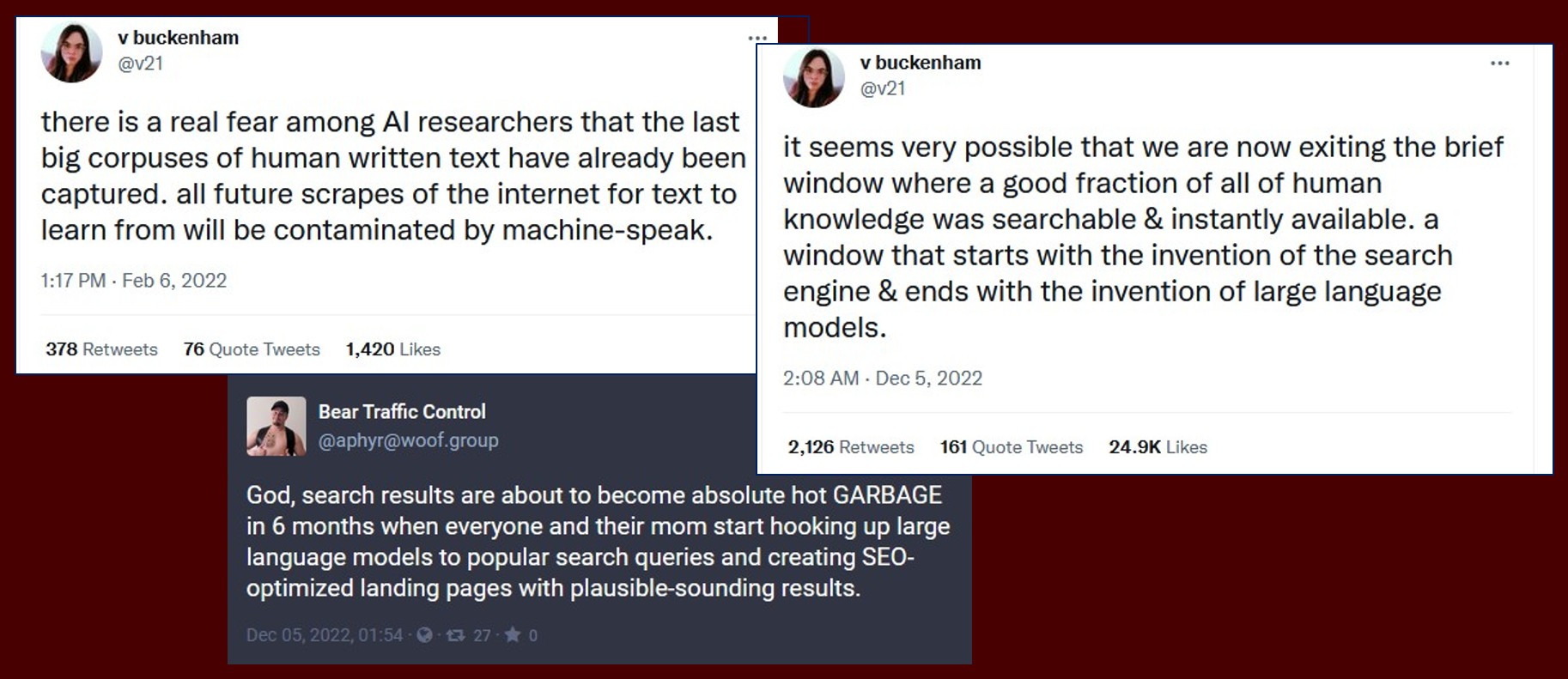 Functies en diensten zijn niet het enige dat bij Google verdwijnt. In het verleden waren er nogal wat zoekgoeroes die Google kritisch volgden, op Twitter en in hun eigen weblogs. Daar waarschuwden ze ons voor rare fouten en pitfalls die ze waren tegengekomen bij de diverse Google diensten. Maar de meeste van die goeroes doen er intussen het zwijgen toe. Gwen Harris (@websearchlady) is met pensioen en de immer kritische Phil Bradley beperkt zich tot didactische podcasts, nu ook hij met pensioen is. Greg Notess en Marydee Ojala schrijven hooguit nog wat in betaalde bladen. Henk van Ess richt zijn aandacht nu vooral op het gebruik van systemen voor generatieve AI. Van Danny Sullivan komen niet heel veel kritische geluiden meer, sinds hij, na zijn afscheid bij SearchEngineLand, bij Google zelf in dienst gekomen was. Nu pakt dat laatste soms wel goed uit, omdat zoekgebruikers via hem een laagdrempelige ingang bij Google hebben, waarlangs een overleden functie een enkele keer toch nog gereanimeerd kan worden.