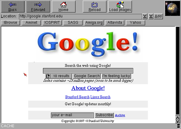 De traditie wil dat Google, zoals veel technologiebedrijven, in een garage is ontstaan. Toch is dat niet helemaal waar, want Larry Page en Sergey Brin hadden in 1998 hun nieuwe zoekmachine ontwikkeld als onderdeel van hun studie aan Stanford University. Het allereerste URL was dan ook google.stanford.edu.
